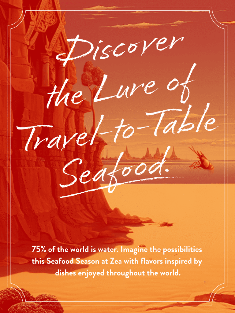 Discover Travel to Table Cuisine at Zea, with food and drink inspired by flavors and cultures from around the world. At Zea, you can do 10 cities in 10 meals. You get all the adventure, all the authenticity, none of the jet lag.